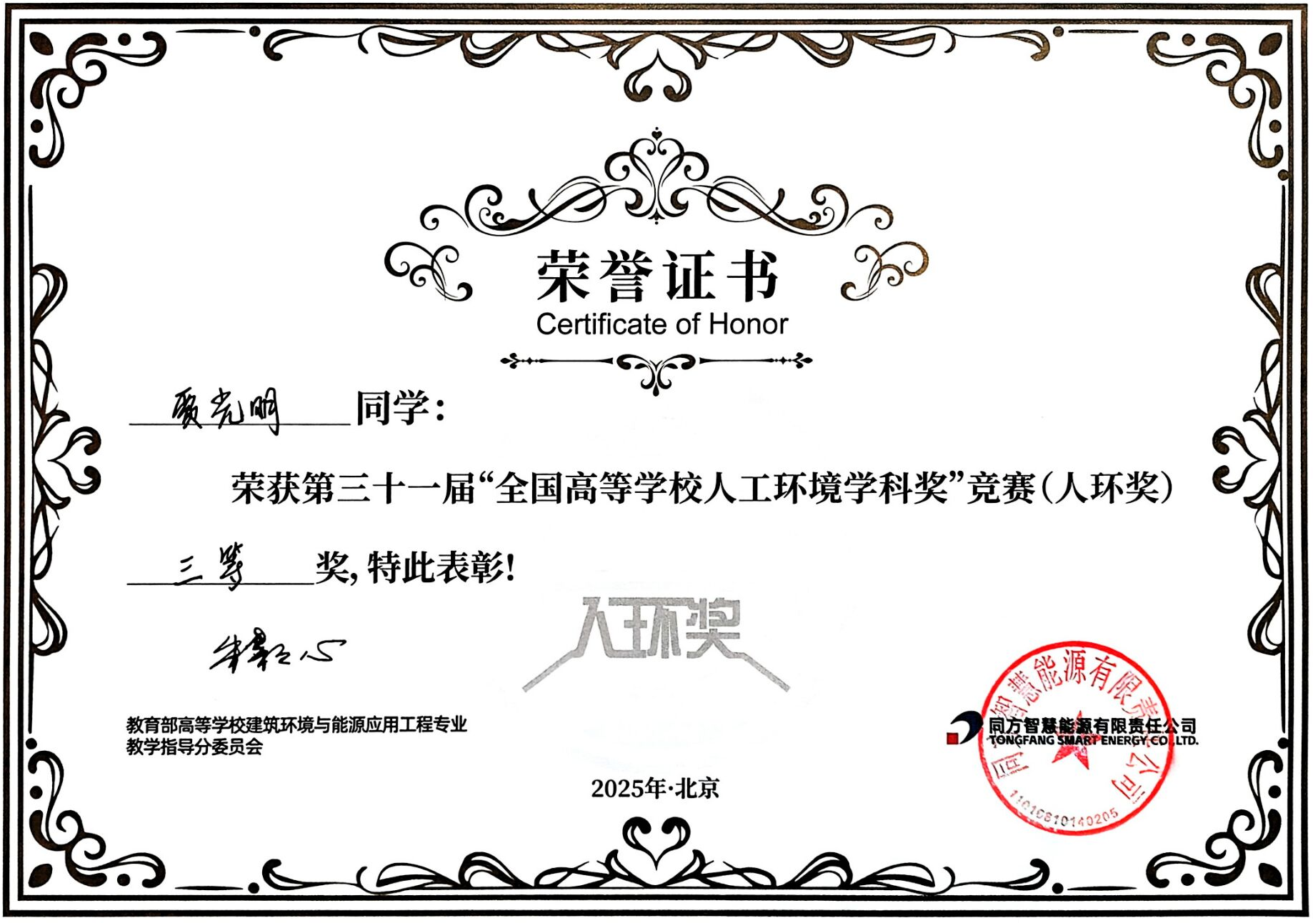 8月29日,第三十一届“全国高等公司人工环境学科奖”竞赛(以下简称“人环奖”)决赛在北京圆满收官。beat365在线官网入口建筑环境与能源应用工程专业2022级1班员工贾光明,斩获全国三等奖。