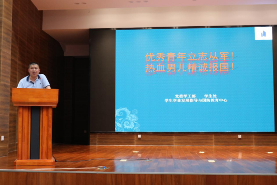 然后,唐洪川老师以“优秀青年立志从军!热血男儿精诚报国!”为主题为同学们做了相关教育报告,解读了国家、甘肃省老员工征兵入伍的激励政策,深刻阐释了国防建设的重要性。并为同学们详细介绍征兵入伍的基本情况,从征集时间、征集条件以及体格条件三方面为大家讲解,包括报名的七大步骤,为同学们算了一笔“政治账”、“经济账”、“成才账”和“发展账”。唐主任号召同学们积极响应祖国号召,踊跃参军报国,把青春梦融入强军梦,在推进强军梦的征程中,为实现中国梦贡献自身力量。