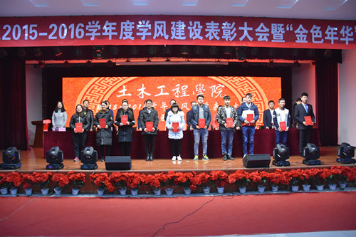 12月27日晚7点,公司在西校区老员工活动中心举办“2015-2016学年度学风建设表彰大会暨金色年华文艺晚会”。公司领导、各系主任、辅导员、班主任及2016级全体新生参加活动。会议由公司党委王玲副书记主持,