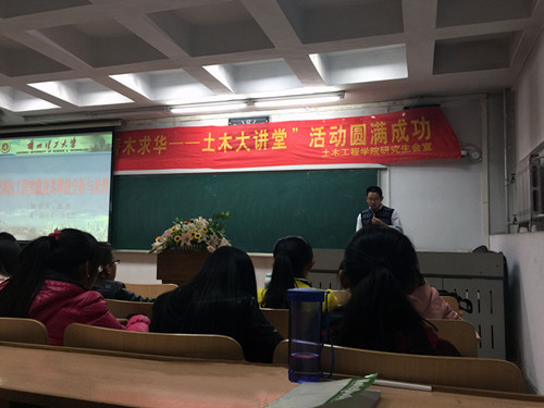周勇教授,国家一级结构工程注册师,主要从事支挡结构研究,在基坑工程实践方面具有很多经验。周老师主要从三方面展开讲座的内容,首先讲解了深基坑工程的概念及特点,其次介绍了兰州地铁深基坑工程的现状。周老师提到,兰州修建地铁是兰州市交通呈现“东西拥挤、南北不畅”的局面和“两山夹一谷”特殊的地理环境所决定的,所以兰州地铁的建造势在必行。随后讲到,兰州市轨道交通线网规划总共有六条线,全长207km,其中1、2、3号线是中心城区线网,全长90km,另外三条是市域线网,即中川线、青川线、榆中线,全长117km。目前在建的是1号线,跨越四个城区,两次经过黄河,具有一定的技术难度。最后周老师结合各种基坑工程事故的实例及经验教训,告诫同学们要认真做人、严谨求学。讲座中,周老师生动的叙述,幽默风趣的语言使现场气氛非常活跃,引人入胜。
