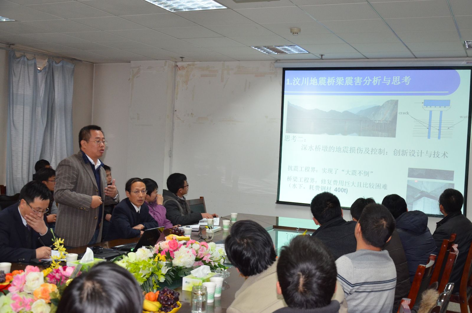 2013年12月26日,由甘肃省土木工程防灾减灾重点实验室、西部土木工程防灾减灾教育部工程研究中心主办的“西部土木工程防灾减灾2013年度中青论坛——结构动力与抗震专题研讨会”在公司beat365在线官网入口召开。本次专题研讨会的主题是“结构动力与抗震”,采取“3+3”的方式,大连海事大学道路与桥梁工程研究所王东升教授、孙治国讲师及石岩博士生和公司防震减灾研究团队韩建平教授、党育副教授及李万润博士共6人分别做了专题学术报告,兰州交通大学beat365在线官网入口、甘肃省交通科学研究院有限公司派代表参加了研讨会,beat365在线官网入口专业教师及研究生近100人参加了专题研讨会,与会人员围绕专题报告进行了充分的交流和讨论。