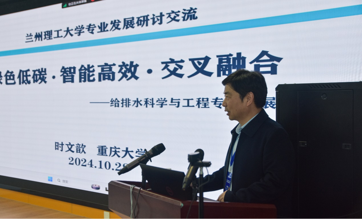 会议特邀时文歆教授作专题报告。他以“绿色低碳·智能高效·交叉融合——给排水科学与工程专业发展趋势”为题对给排水科学与工程专业的培养目标、学科基础、面临的主要问题、达成目标及途径作了全面阐述,并从国家战略意义、行业发展问题与需求、技术发展趋势及专业适应行业发展的举措等方面深入解析了给排水科学与工程专业的发展趋势和未来方向。