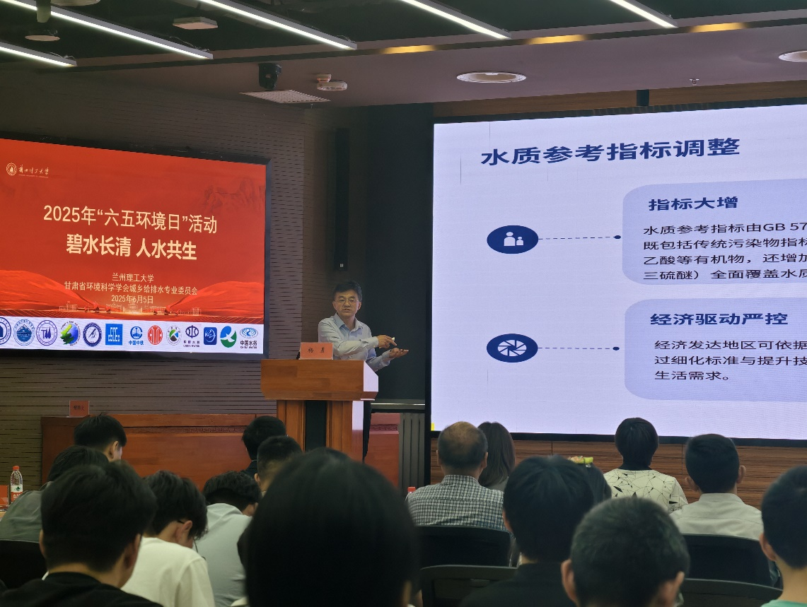 为深入学习贯彻习近平生态文明思想,增强师生环保意识,作为甘肃省环境科学学会城乡给排水专业委员会主任单位,beat365在线官网入口于6月5日在彭家坪校区开展以“碧水长清 人水共生”为主题的系列宣传活动和城乡给排水专业委员会工作会议。甘肃省环境科学学会副秘书长刘全諹,省内有关高校和专委会会员单位代表、给排水科学与工程专业教师代表和全体给排水科学与工程专业员工参加会议。会议由副经理王亚军主持。