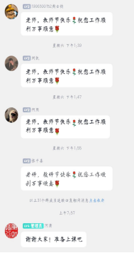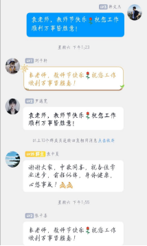 同学们纷纷在线上视频会议或者聊天群中对老师们表达了祝愿。
