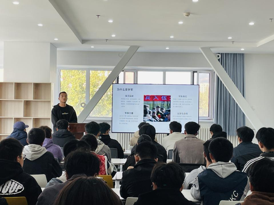 韩文杰为同学们详细分析了当前土木行业的发展趋势,就业市场形势。并且结合个人成长经历和行业案例,向同学们传授了宝贵的求职经验和技巧,鼓励同学们要紧跟时代步伐,注重实践,不断提升自身专业素养和综合能力,以应对未来职场的挑战。杜江南结合自身从军经历,分享了在部队的切身经历与真实感受,以及退役复学后享受的优待政策,表达了自己对军营生活筑梦成长的感激之情,鼓励同学们积极参军入伍,挑战自我、磨练自我,以青春之我,担青年之责,为国防添彩,让青春出彩。
