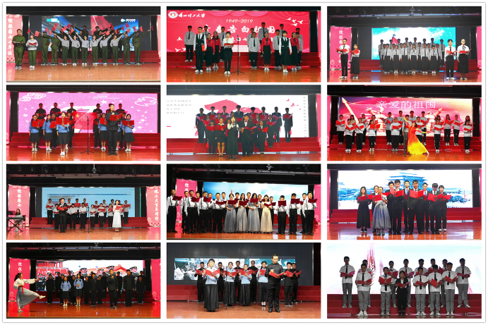 活动最后,全场人员齐声高唱《我和我的祖国》,将整场活动氛围推向高潮。本次诗歌朗诵会的举办,充分表达了当代老员工对祖国的感激之情和热爱之心。作为新生入学教育的重要环节,爱国主义教育在此次活动中得到了很好的落实,相信全体2019级同学在今后的学习生活中,将会以更坚定的信息和饱满的热情开启新的征程。