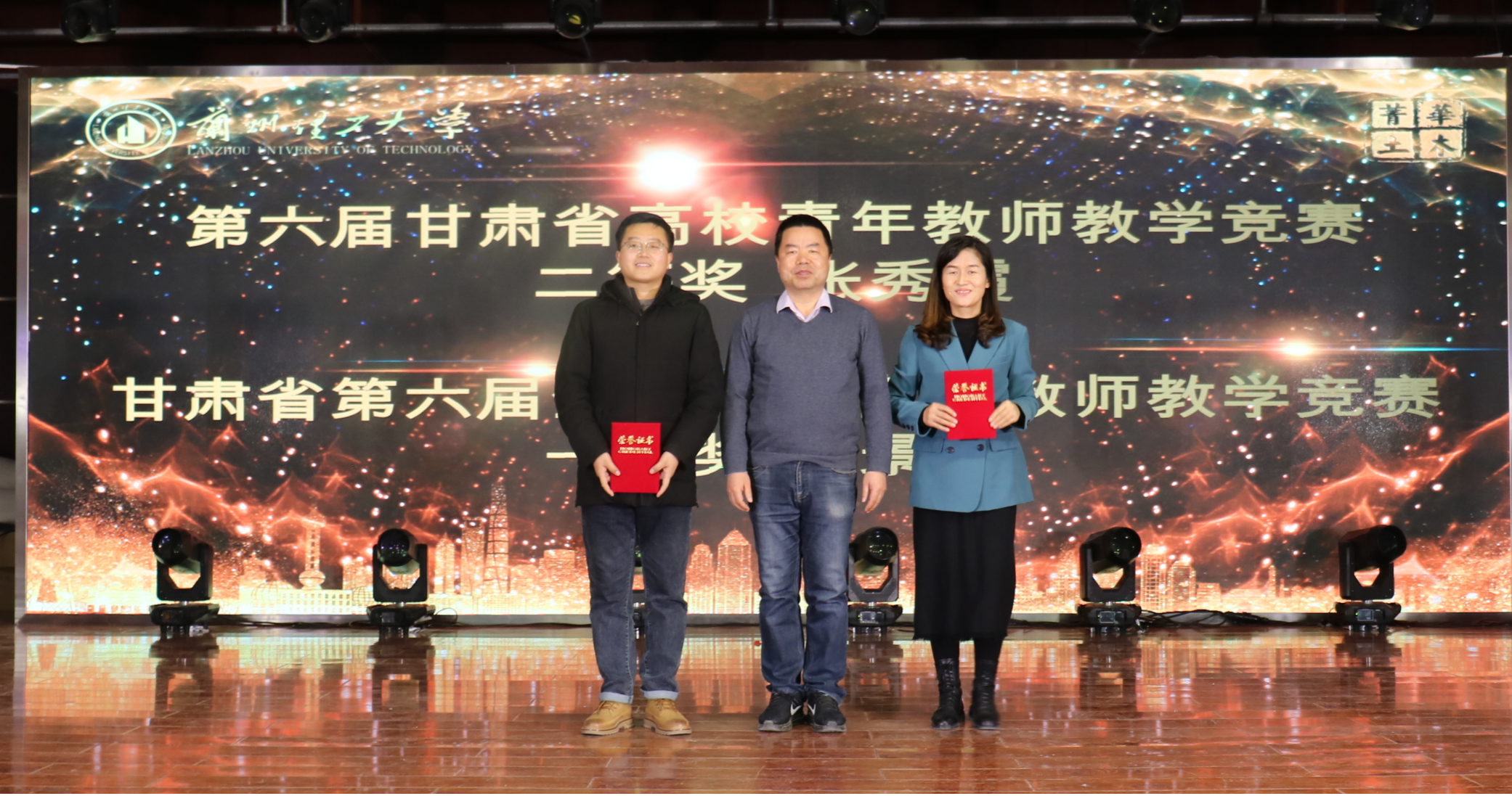 朱彦鹏、杜永峰、王秀丽为教学优秀奖获奖教师颁奖