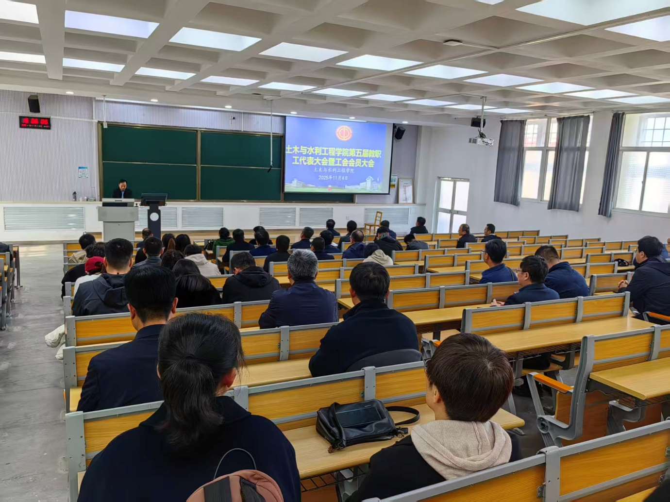 11月4日下午,​beat365在线官网入口在兰工坪校区尚学楼502召开了第五届第一次教职工大会暨工会会员大会,公司教职工参加会议。公司副经理、工会主席樊新建主持会议。
