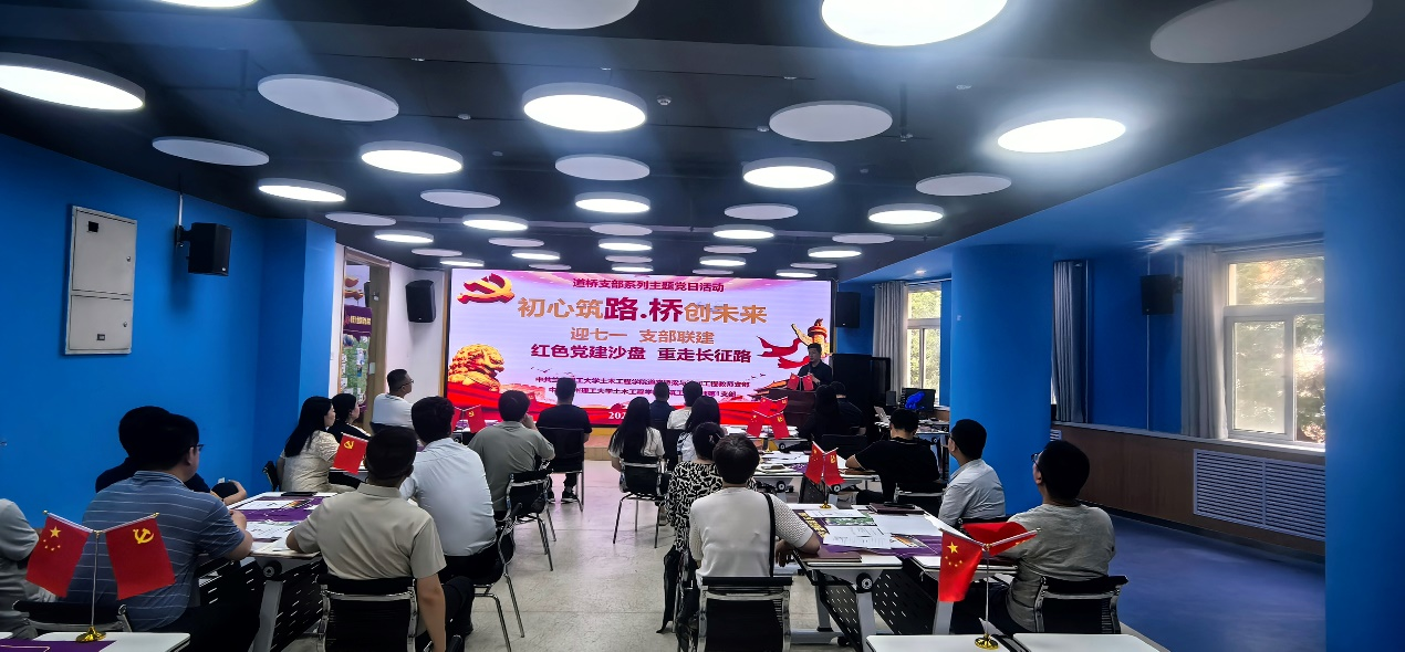 在迎接中国共产党成立104周年之际,beat365在线官网入口道路桥梁与渡河工程教师党支部于6月18日联合全国党建工作样板支部建筑工程教师第1党支部,在兰工坪校区开展“初心筑路·桥创未来”系列主题党日活动,活动由道桥党支部书记李喜梅主持。