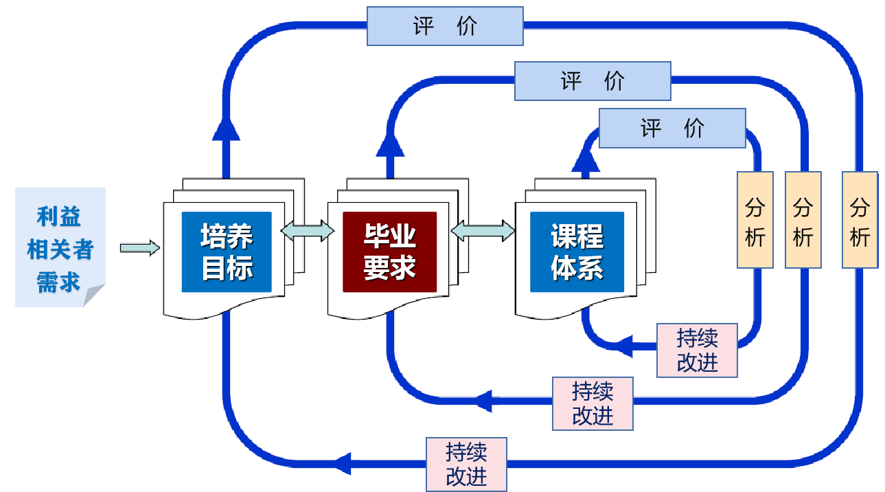 推进产出导向教育(OBE),需要公司和专业从思想理念到具体行动,从管理人员到一线教师,从专业课程到基础课程,都要逐步完成面向产出的模式变革。近年来,为了帮助专业抓住主要矛盾,关注重点环节,认证协会提出了要推进专业建立以毕业要求为主线,以毕业要求和课程目标评价为底线的认证工作核心要求,其中的关键性工作是推进专业建立面向产出的评价机制。近年来认证实践中的申请与审核要求、自评与审核要求、现场考查与结论审议等各环节工作,均把“主线”和“底线”作为当前认证工作的重点。本次印发《指南》,也把专业建立面向产出评价机制作为每年改进并提交改进材料,以及中期提交改进情况报告的重点要求。